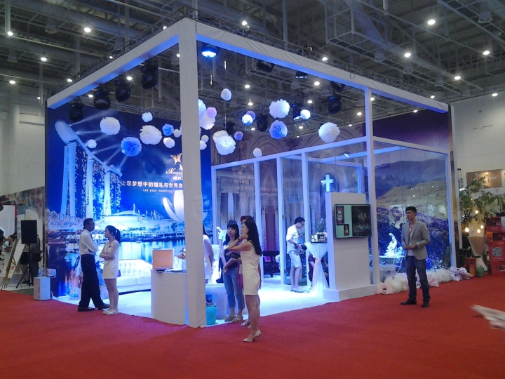 (2)、傳統(tǒng)式,或叫保守式模式。為分:廂房式、閣樓式、地攤式等。這種造型一般較為簡單,傳統(tǒng)隨便,尤其是廂房式的多是常規(guī)性的,按一定固定模式統(tǒng)一裝修好如同車廂一樣一個連著一個,形成3×3平方米的固定展位模式,一排連著一排,無需參展廠家再作裝修,需要參展時,只須將物品?一擺放好就行了;門樓式系傳統(tǒng)的廊房,牌房或普通的廂房一樣的模式;還有一種是屬于地攤式的,或隨便擺放一個桌子作為攤位的較為簡陋的一種模式(這種模式是較低層次的模式)。前一種開放式的適宜大型展覽,后一種倒適宜中小型展覽或簡單性的展覽。
